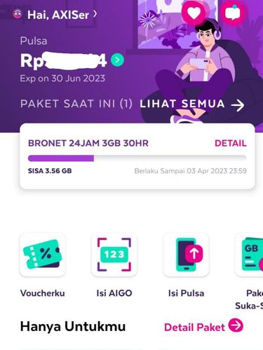 - Jika berhasil masuk, maka sisa kuota internet AXIS kamu akan langsung muncul di layar page akun.